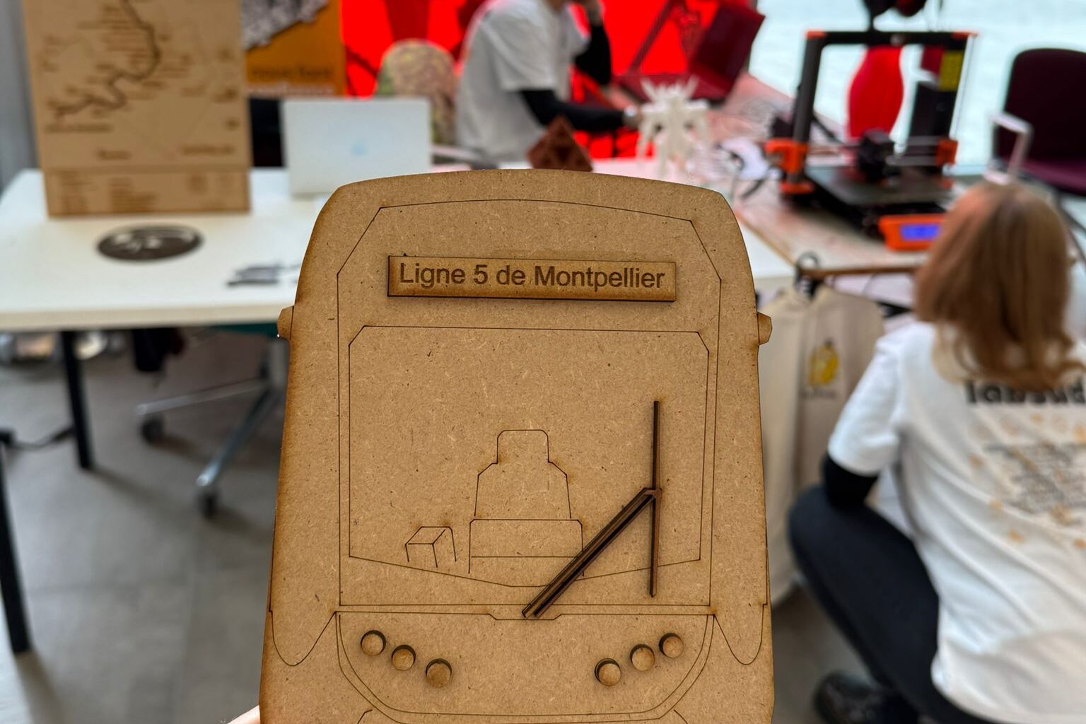 Pour cet événement, le fablab a conçu plusieurs objets à l’effigie du tramway, réalisés grâce à nos machines de fabrication numérique, illustrant concrètement les possibilités offertes par le prototypage et la personnalisation.