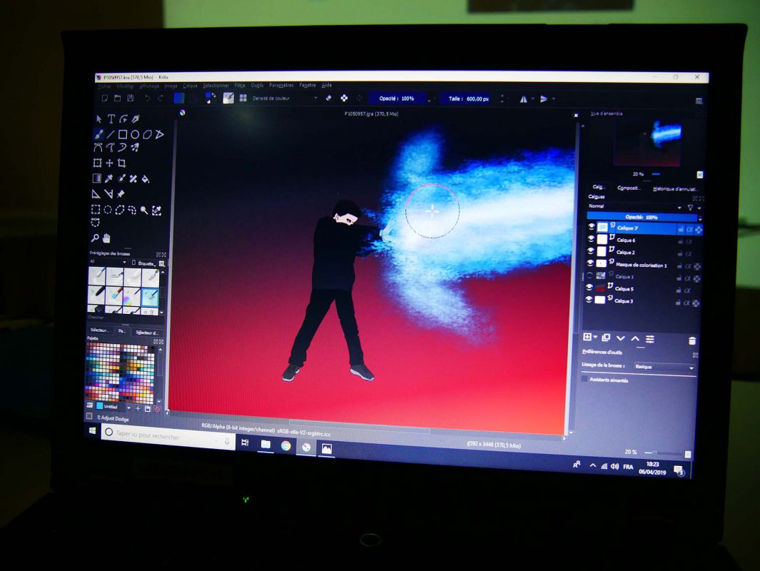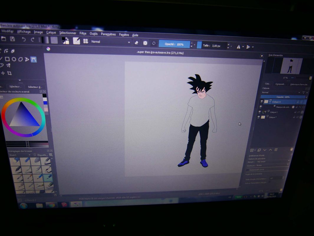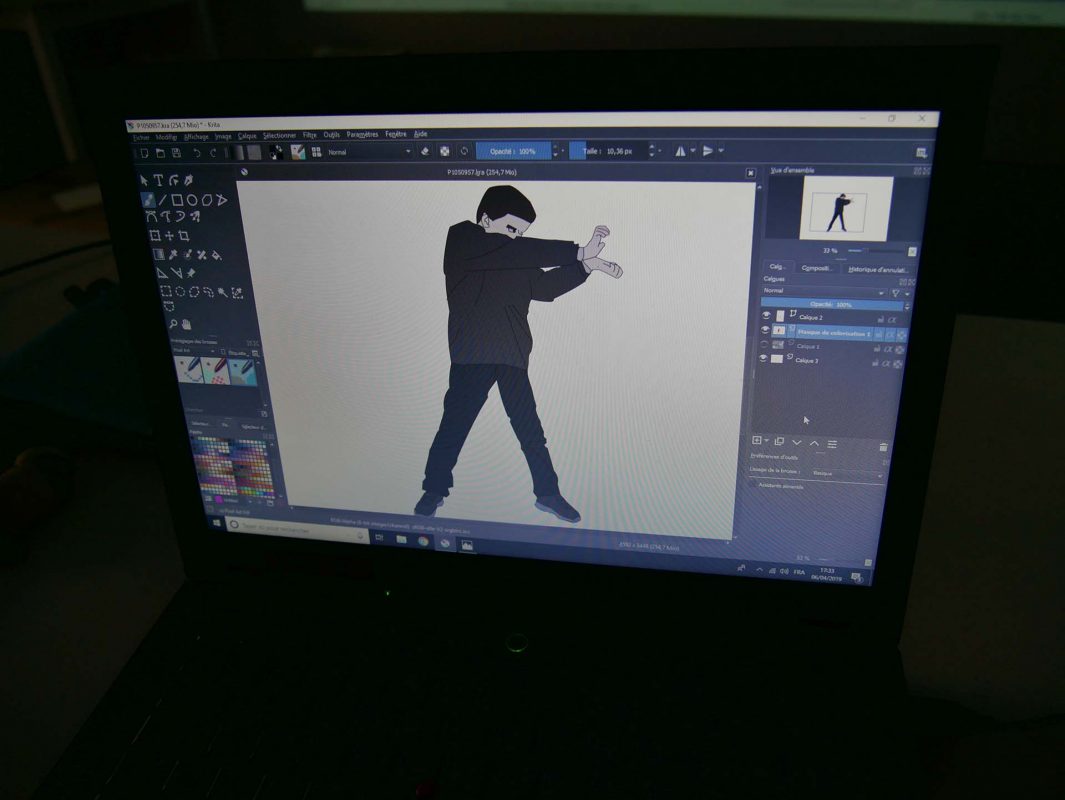 Exemple avec le 1er participant : pose, travail sur ordinateur à partir de la photo (esquisse des contours en mode vectoriel), customisation éventuelle du personnage. Il est prêt à mettre en page !